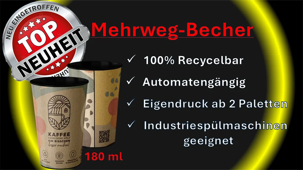...ist auch für uns ein großes Thema, deshalb bieten wir als eines der ersten Unternehmen in der VendingBranche den ersten MehrCup 180 ml -Mehrwegbecher an.